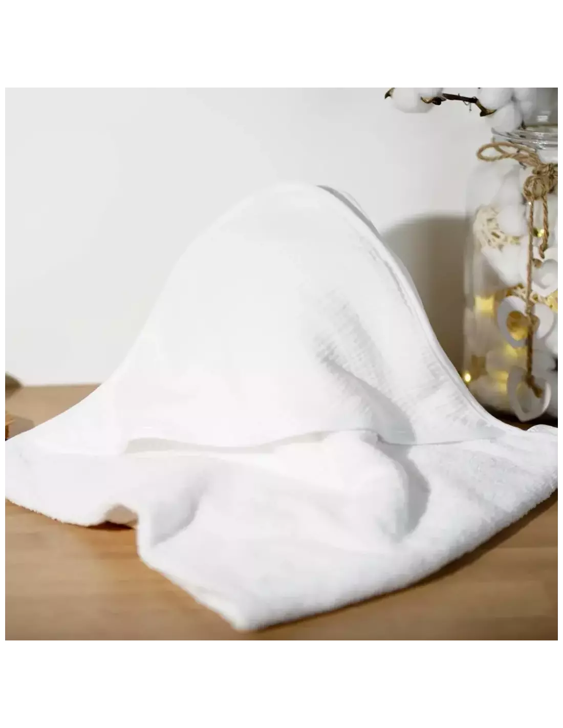 Capuche de bain en gaze de coton, douce, légère et ultra-absorbante.